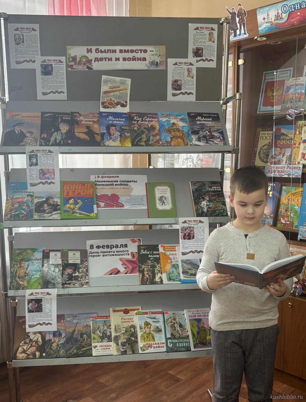 Память о юных героях живет не только в граните обелисков, но и на страницах книг, в кадрах фильмов, в строчках песен. К этой важной памятной дате в детской библиотеке оформлена книжная выставка «И были вместе — дети и война».
