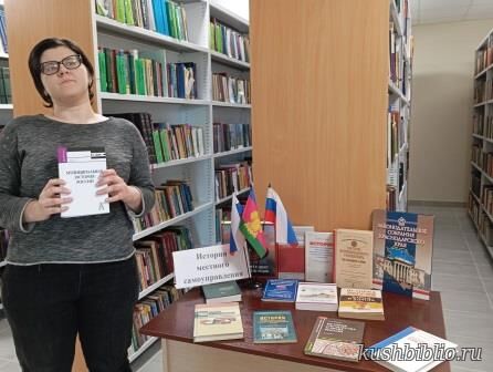 Этому важному государственному празднику в центральной библиотеке был посвящен час истории. Посетители прослушали историческую хронику становления местного самоуправления на Руси, начиная с 1785 года, когда Екатерина Великая подписала «Грамоту на права и выгоды городам Российской Империи», проследили государственные реформы правителей России. Рекомендательный обзор исторической и юридической литературы дополнял и уточнял основные вопросы и принципы местного самоуправления в России. В заключении участникам мероприятия была предложена юридическая и историческая литература на данную тему.