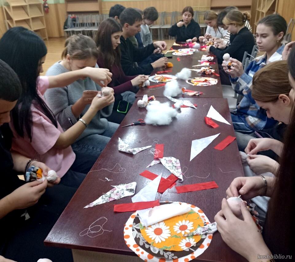 В преддверии Дня народного единства в центральной библиотеке совместно с Районным центром ремёсел для студентов ГБПОУ Кущевского медицинского колледжа был организован исторический экскурс с мастер-классом по изготовлению «Куклы-мотанки Колокольчик: оберег добрых вестей».