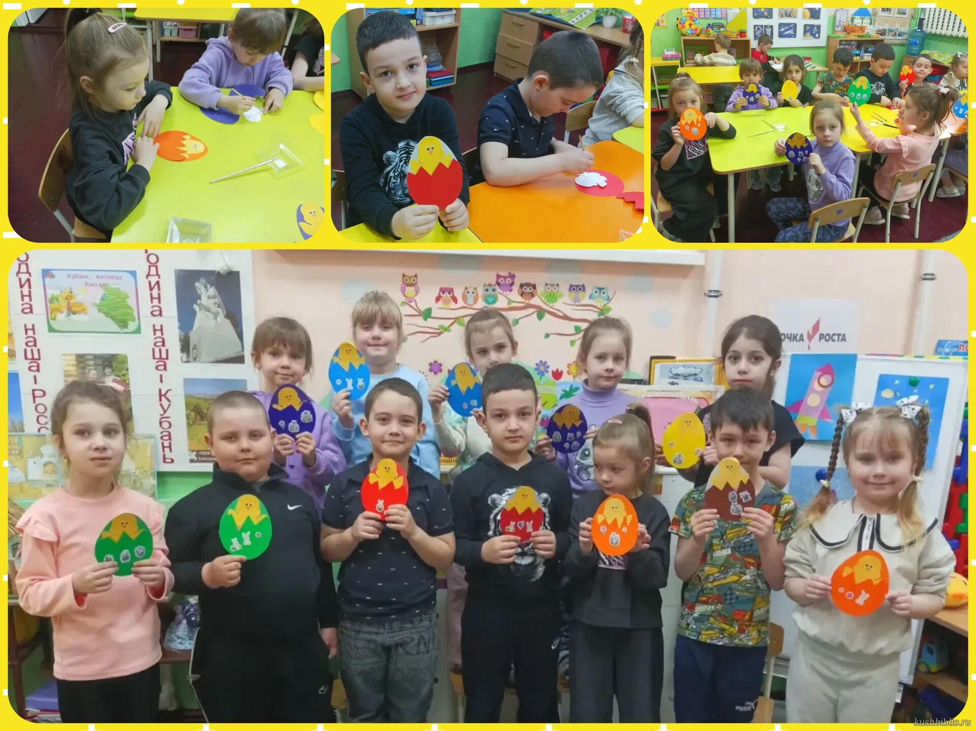 Во время творческой части занятия каждый ребёнок получил цветные шаблоны яиц, которые нужно было украсить по своему вкусу. Дети с энтузиазмом приклеивали цыплят, добавляли яркие узоры и орнаменты, проявляя фантазию и творческие способности. Каждая работа получилась красочной, яркой и уникальной. Готовые поделки превратились в настоящую выставку детского творчества. В завершение встречи все участники получили массу положительных эмоций и новые знания о самом светлом христианском празднике.