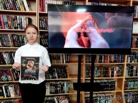 В рамках специальной программы молодежного военно-исторического кинофестиваля «Перерыв на кино» библиотека организовала показ фильма «Красные ленты» киностудии Кира Булычёва, приуроченный к 85-летию Крымской оборонительной операции при поддержке Фонда «Мост поколений». На мероприятие были приглашены учащиеся 8 «А» класса «МАУ СОШ № 16 им. К.И. Недорубова»для просмотра и последующего осмысления подвигов советского народа в Великой Отечественной войне.