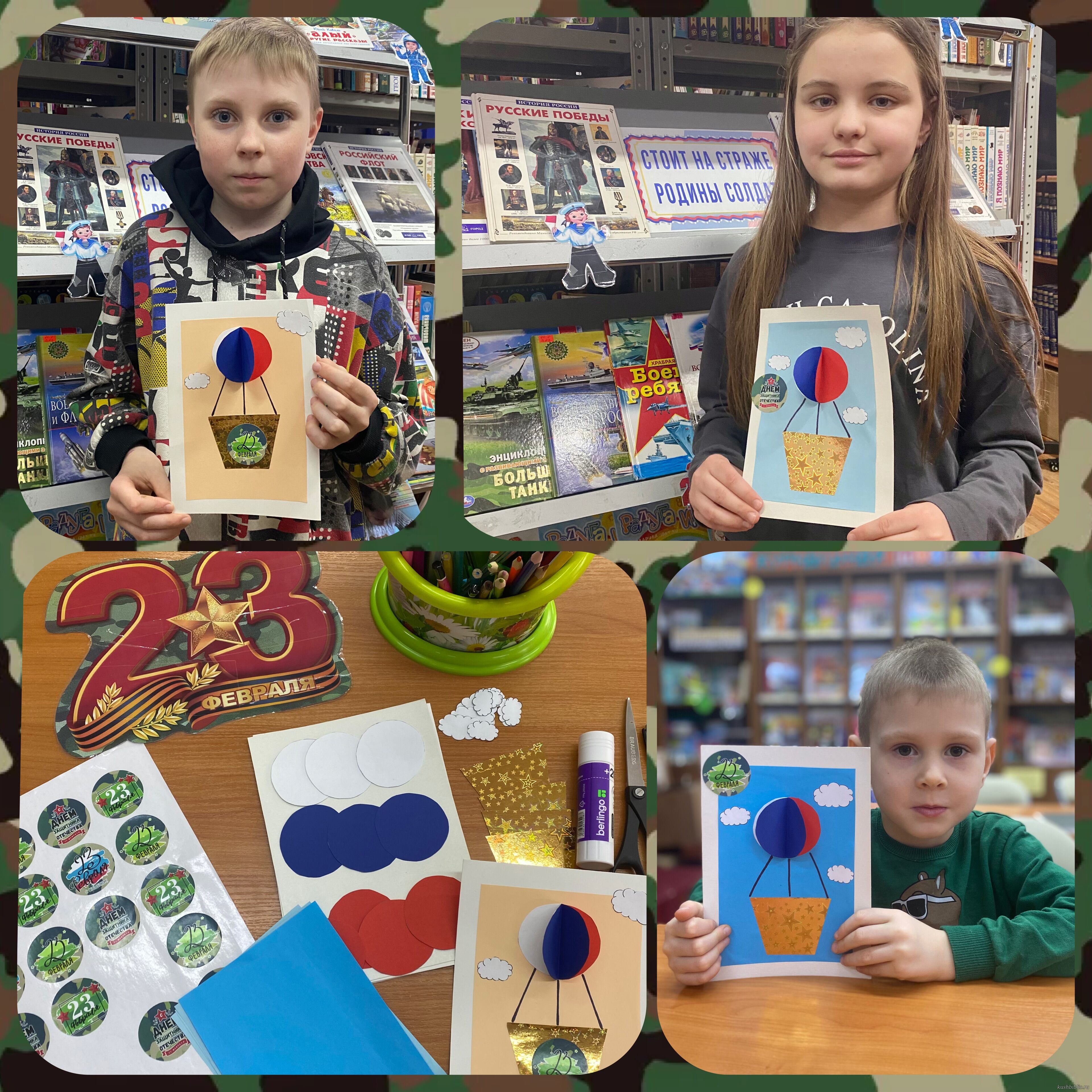 В преддверии этого значимого праздника детская библиотека организовала для своих юных читателей творческую мастерскую «Открытка защитнику Отечества». Под руководством библиотекаря ребята с большим интересом и старанием создавали яркие поздравительные открытки, используя цветную бумагу, фломастеры, стикеры и готовые шаблоны.