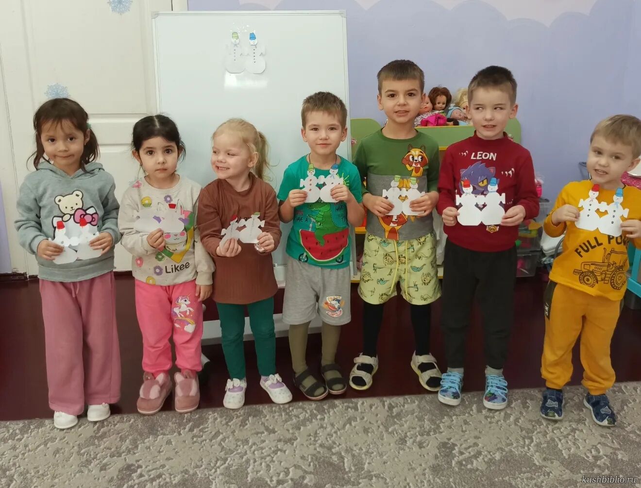 Участники создавали уникальные поделки – снеговиков из бумаги с ярким ведром на голове. Цветными карандашами они рисовали ему глаза, нос-морковку, пуговицы.