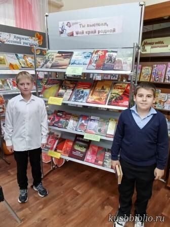 Об этих событиях, подвигах воинов и тружеников тыла, судьбах наших земляковрассказывает литература, представленная на оформленной в детской библиотеке книжной выставке «Ты выстоял, мой край родной». Здесь вы найдете документальные и художественные произведения об упорных боях за наш край; о людях, которые внесли бесценный вклад в летопись боевых и трудовых подвигов кубанцев и всего нашего народа.
