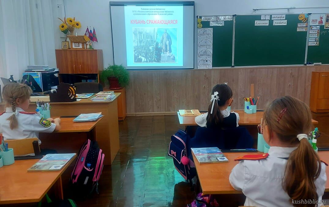 Сотрудник библиотеки рассказала школьникам о воздушных боях в небе Кубани, подвиге морского десанта наМалой земле. Прозвучали отрывки из книги писателя-фронтовика Сергея Алексеева «Сражение за Кавказ».